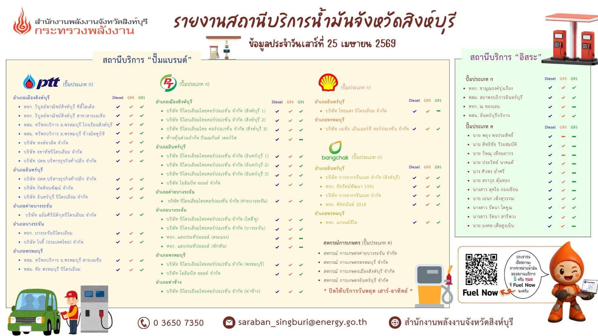 รายงานสถานีบริการน้ำมันจังหวัดสิงห์บุรี